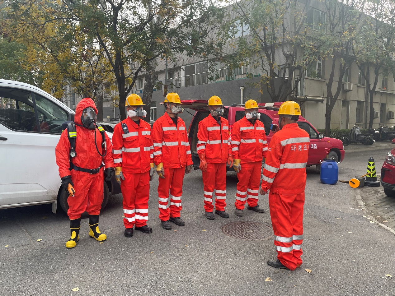 2025年10月30日上午,医学部举行危险废物暂存库遗洒事故应急演练,本次演练由设备与实验室管理处(以下简称设实处)组织实施,设实处副处长郭敏杰担任指挥,设实处及北京金隅红树林危险化学品应急救援队相关工作人员共18人参加了演练。